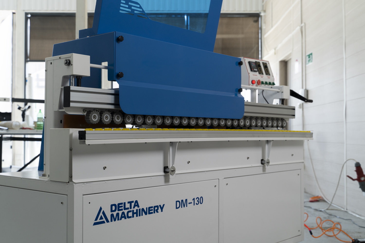 Предназначен для облицовывания прямолинейных мебельных щитов и заготовок натуральным полосовым и синтетическим рулонным материалом. А также для снятия свесов (фрезерования) уже приклеенного кромочного материала одновременно как с нижней, так и с верхней части детали.