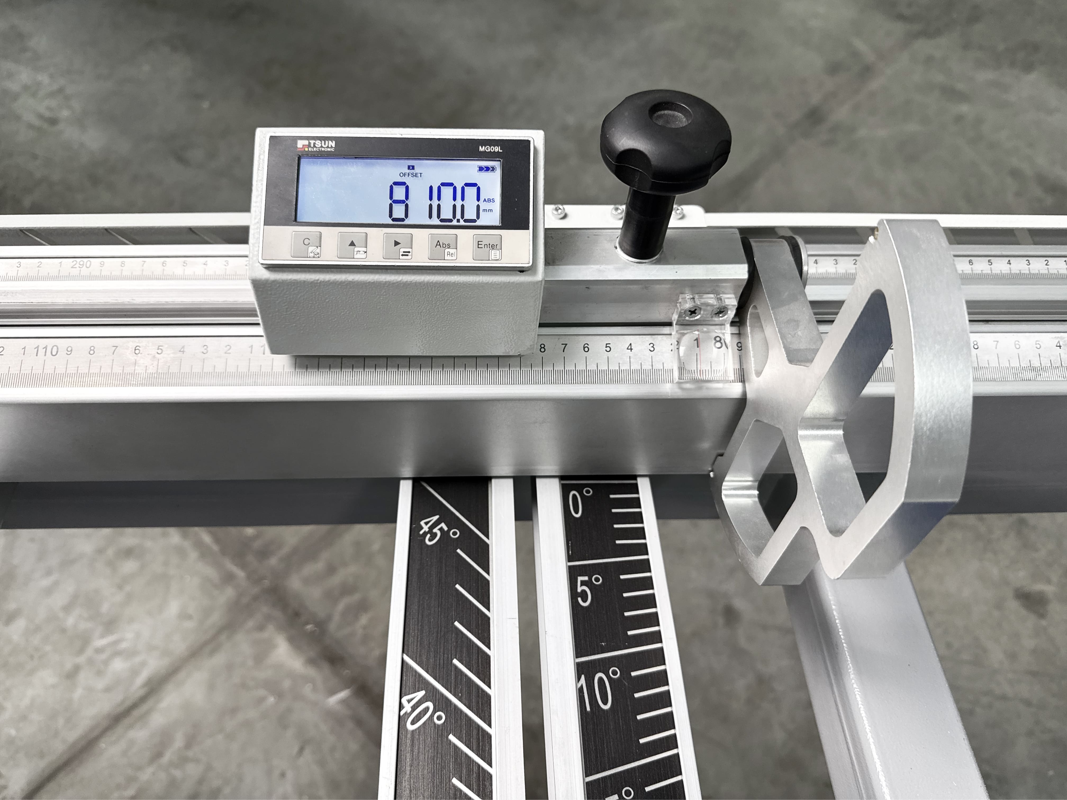 На линейке установлено два перекидных упора, один из них оснащен блоком цифровой индикации, что позволяют быстро и точно настроить станок на необходимый размер. Это исключает человеческий фактор и сводит кол-во брака к нулю.