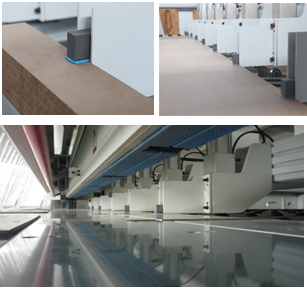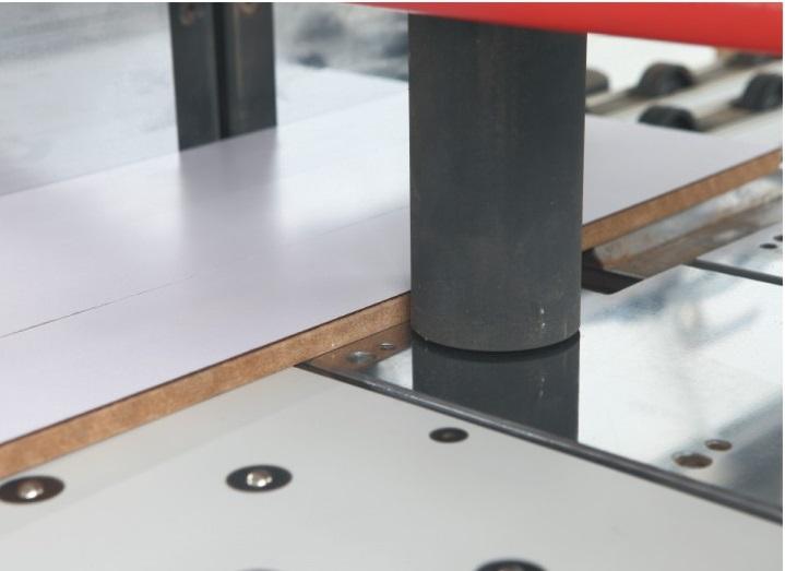 Передняя часть станка оснащена загрузочными столами. В комплектациях используются столы роликами для перемещения листов. Установлены столы с воздушным поддувом. Столы предназначены для загрузки плит ДСтП и выгрузки деталей и срезков, а так же для разворота пакета ДСП из продольного в поперечное положение по отношению к рабочей области станка.
