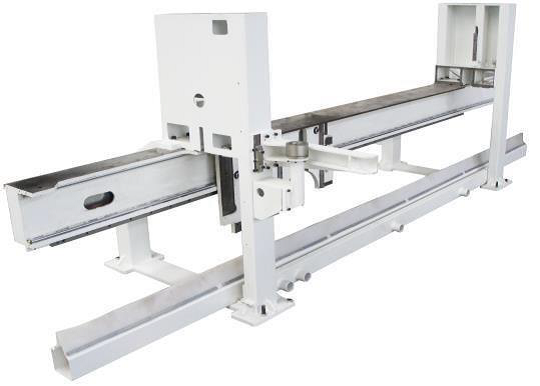 Привод толкателя осуществляется с помощью серводвигателя через передачу шестерня – рейка. При этом в станке реализована система защиты от перекоса балки программного толкателя.