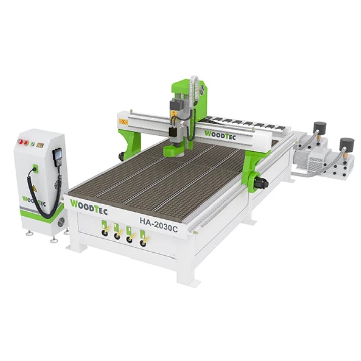 Алюминиевый рабочий стол покрытый износостойким пластиком специально разработанным для совместного использования с вакуумным насосом. Такой стол позволяет быстро и неподвижно установить заготовку на рабочий стол за счет мощной вакуумной станции 5,5 кВт. Также заготовку на стол можно крепить механически при помощи струбцин, для этого стол разделили на 4 зоны с помощью Т-образного профиля. В отличии от многих этот вакуумный насос роторно-пластинчатого принципа, который работает в разы дольше чем все конкуренты.