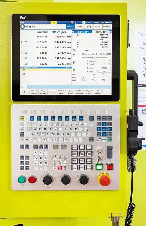 Стойка ЧПУ оснащается 17-дюймовым экраном с разрешением 1280*1024 в стандартной комплектации. Опционально устанавливается цветной сенсорный ЖК-монитор 17 дюймов. Панель выполнена из алюминиевого сплава. Для ввода команд и привязки горячих клавиш предназначена клавиатура MCP.