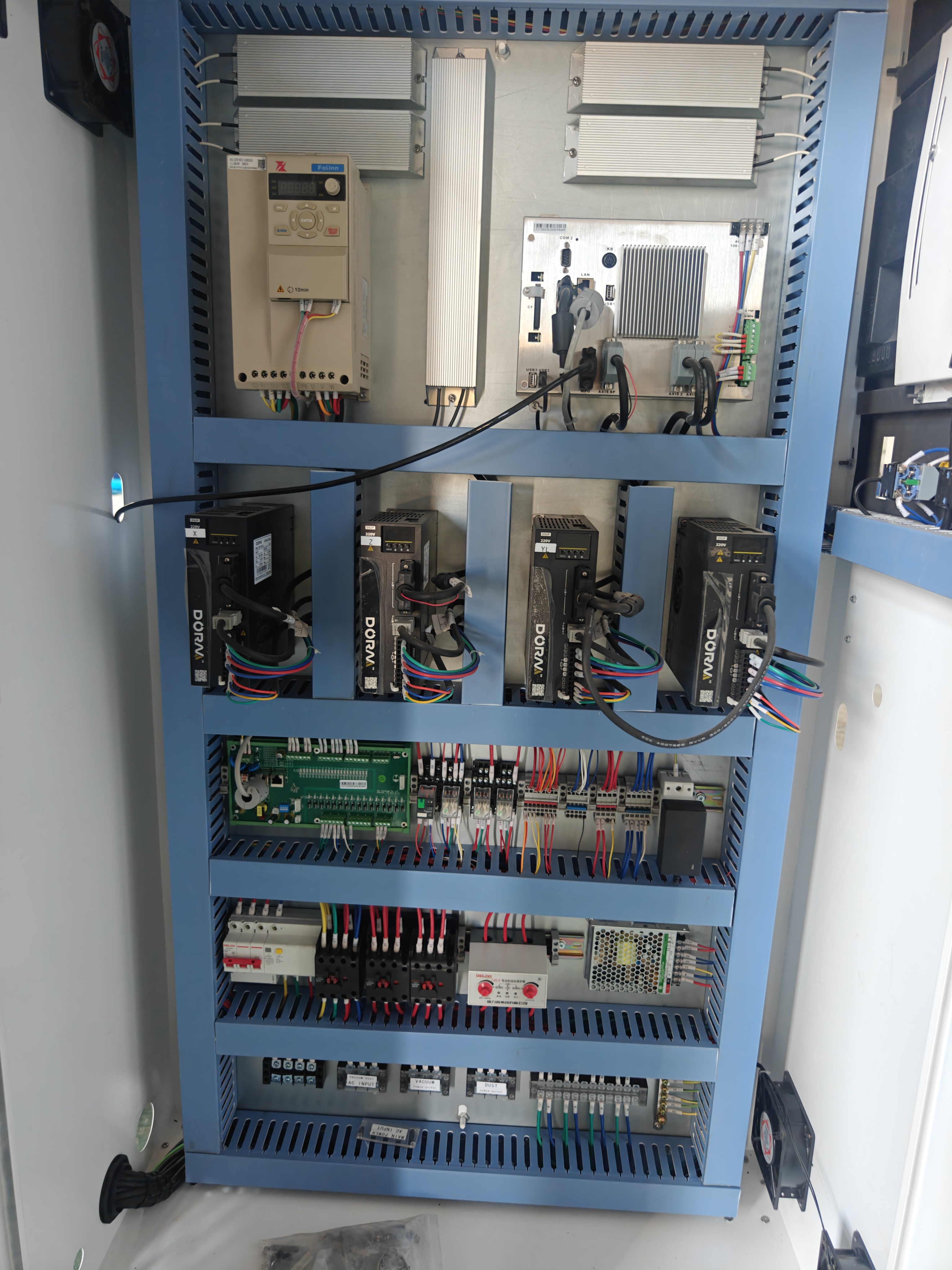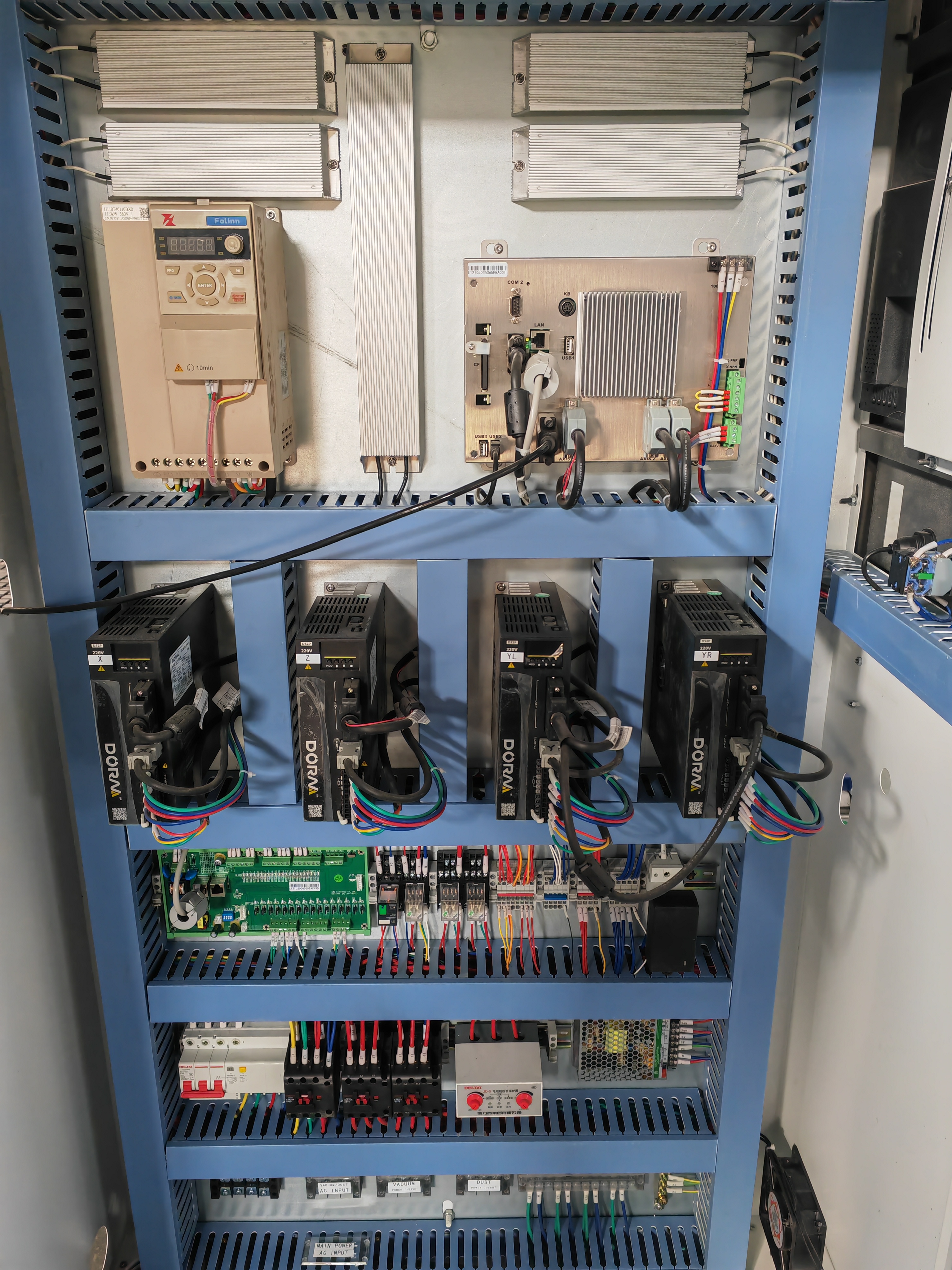 В приводах каждой оси используются высококачественные серводвигатели DORNA, мощностью 1,5 кВт, обеспечивающие точное перемещение каждой оси на высоких скоростях и стабильность траектории перемещения.