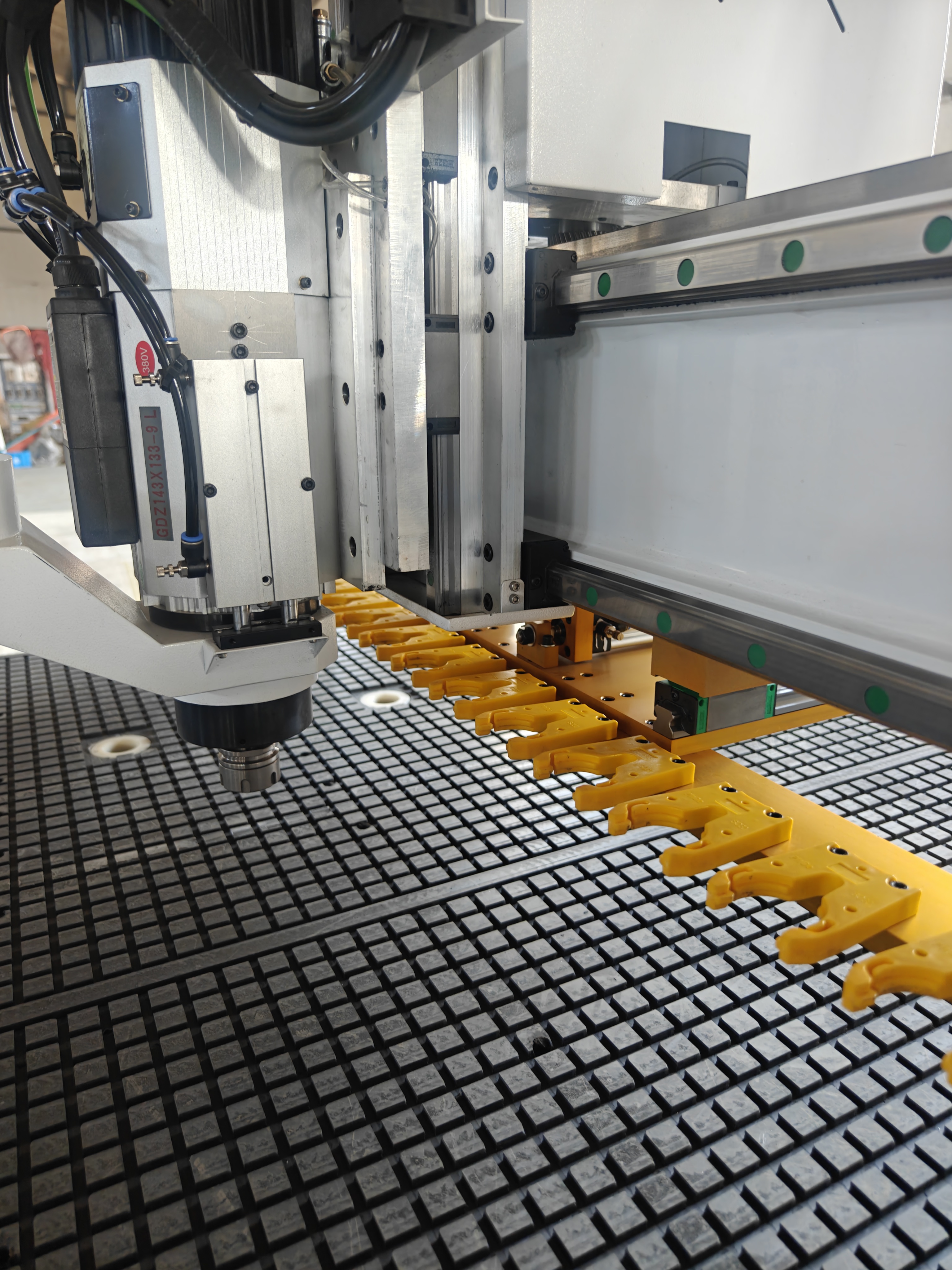 Станок оснащен шпинделем промышленной серии мощностью 9 кВт HQD с оборотами 24000об/мин. Способ смены инструмента: автоматический. Длительный срок службы, стойкость к нагрузкам, стабильная работа.