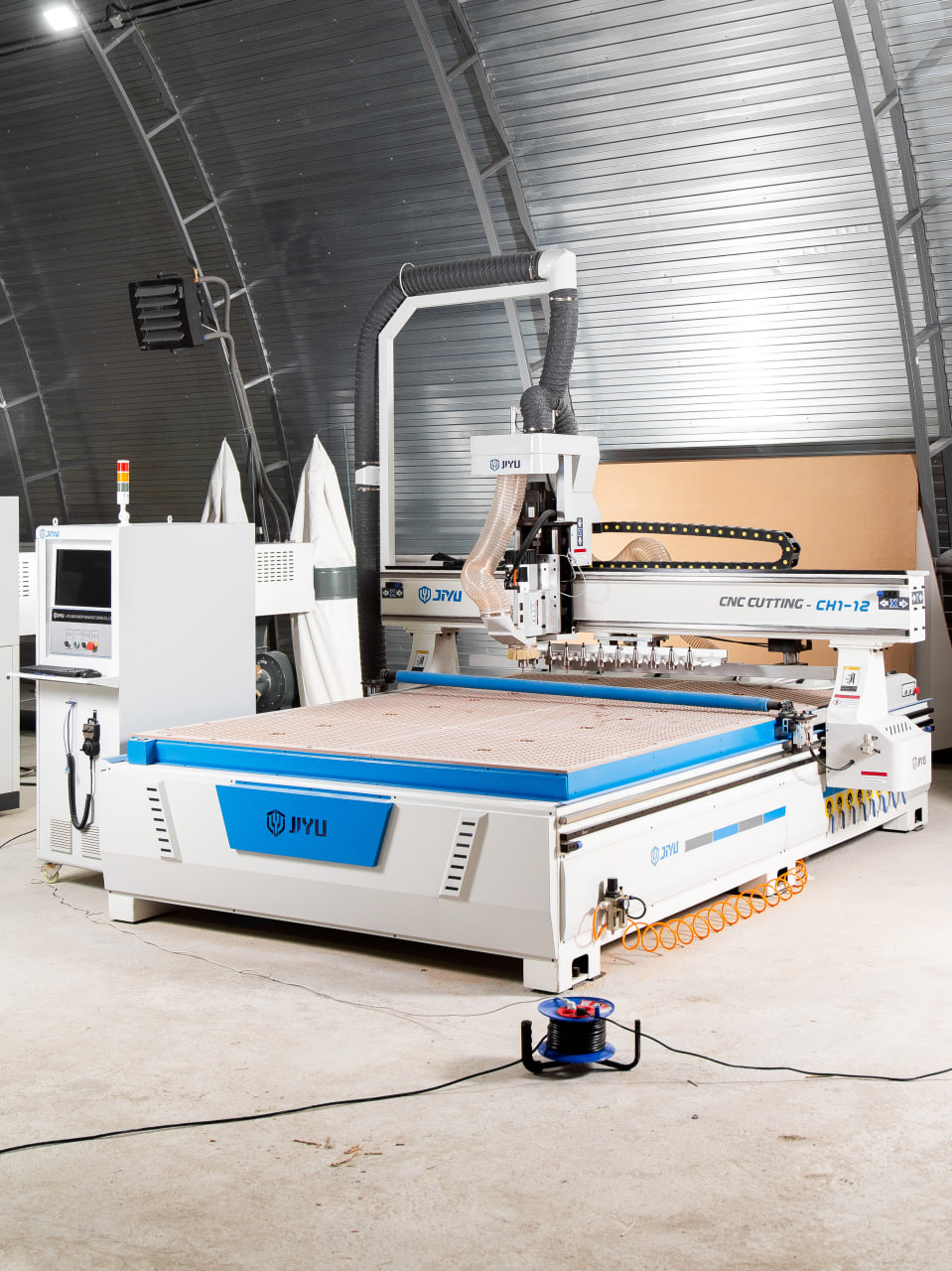 Опционально станок может быть оснащен автоматической системой загрузки материала, представляющей собой вакуумные загрузчики, работающие от пневматики и загрузочный стол. Опция может быть заказана в двух комплектациях, стол + загрузчики, либо отдельно загрузчики интегрированные на портале станка.