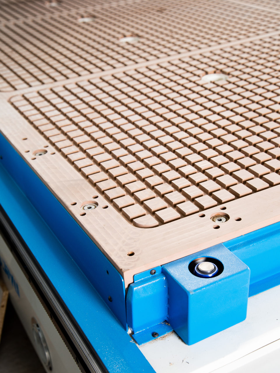 Рабочий стол с вакуумной подготовкой разделен на 6 зон. Любая из вакуумных зон может быть деактивирована с помощью перекрытия соответствующего крана.