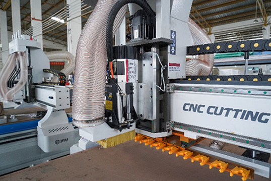 Сверлильная группа на 9 независимых инструментов по оси X и Y позволяет производить плоскостную присадку с высокой точностью и скоростью.