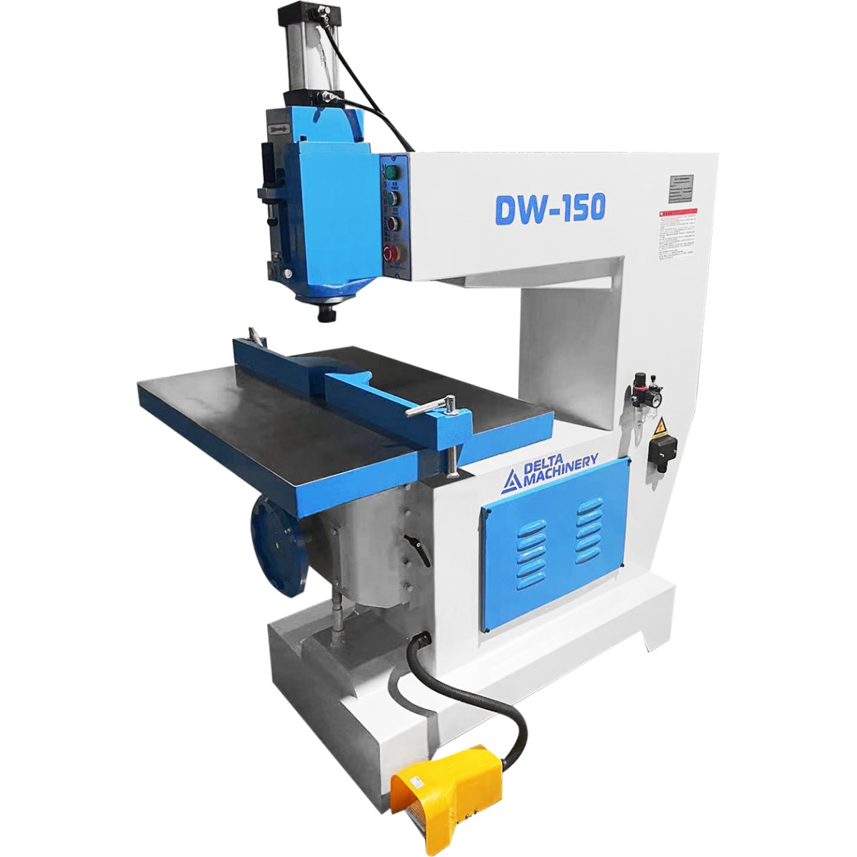 Вертикальный ход шпинделя от пневмоцилиндра. Осуществляется с помощью нажатия на педаль. Пневматика обеспечивает равномерность подачи шпинделя с инструментом и как следствие высокое качество обработки.