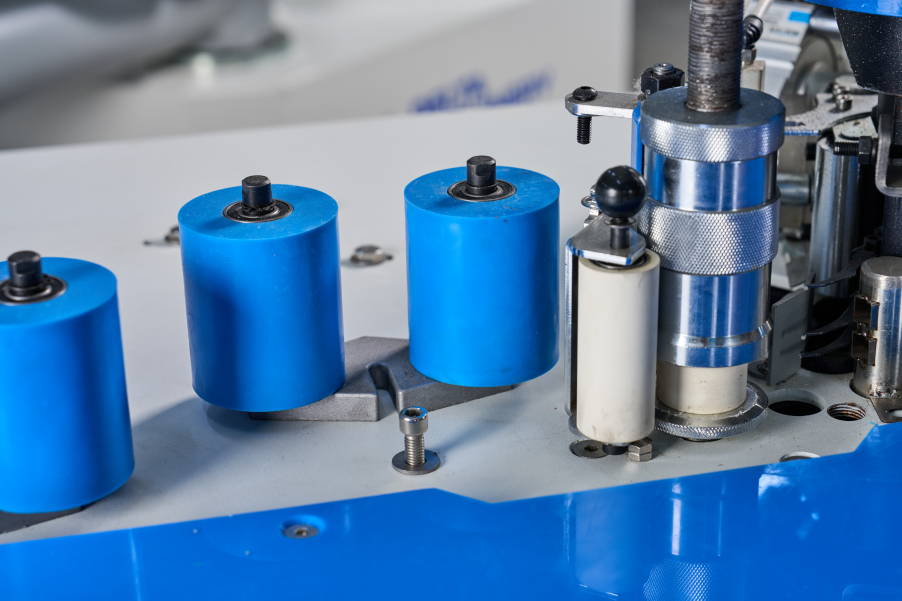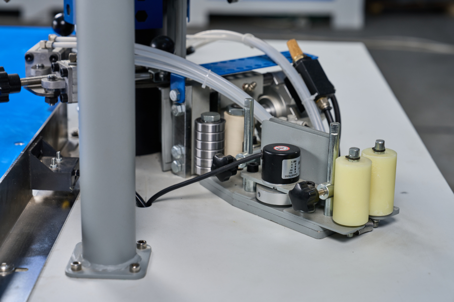 Система подачи кромочного материала с энкодером, позволяющая подавать точное количество кромки в зону приклеивания (параметр задается с пульта в мм).