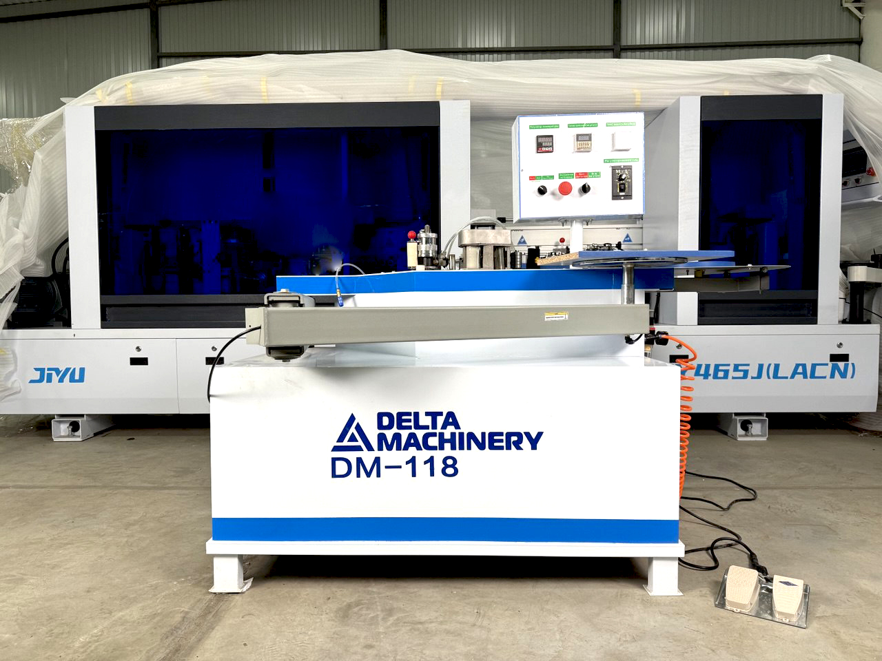 Стационарный кромкооблицовочный станок c автоматической подачей кромочного материала. Главная особенность – это подвижный вакуумный столик, который позволяет без труда в одиночку приклеивать кромочный материал на крупногабаритные криволинейные и прямолинейные детали. Предназначен для облицовывания деталей с прямой, круглой формой, а также с внутренними и внешними радиусами криволинейных заготовок. В качестве облицовочного материала применяют ленту из ПВХ, АБС, меламина и натурального шпона. Станок оснащен 2 клеенаносящими роликами, что позволяет накладывать клей не только на поверхность кромочного материала, но и на заготовку. Это облегчает работу и помогает избежать брака при работе с деликатными кромками.