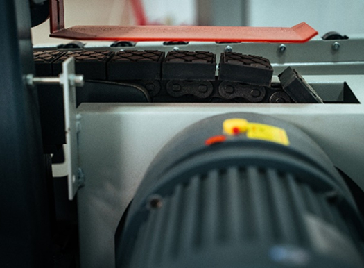Надежный цепной привод конвейерной лены работает от двигателя 1,5 кВт.