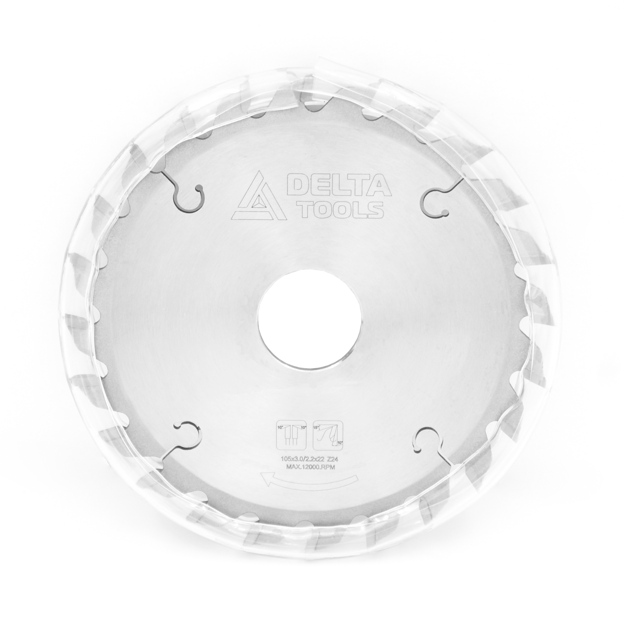 Пила торцовочная DELTA TOOLS 105x22 Z=24 предназначена для обрезки кромки по торцам заготовки, при обработке на кромкооблицовочных станках.