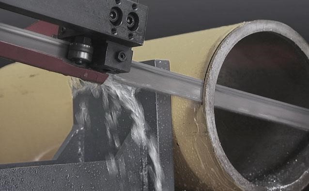 Точность резки на станке достигается за счет перпендикулярно установленного ленточнопильного полотна, которое надежно поддерживается шариковыми подшипниками с увеличенным сроком эксплуатации (встроены в направляющие на пильной раме).