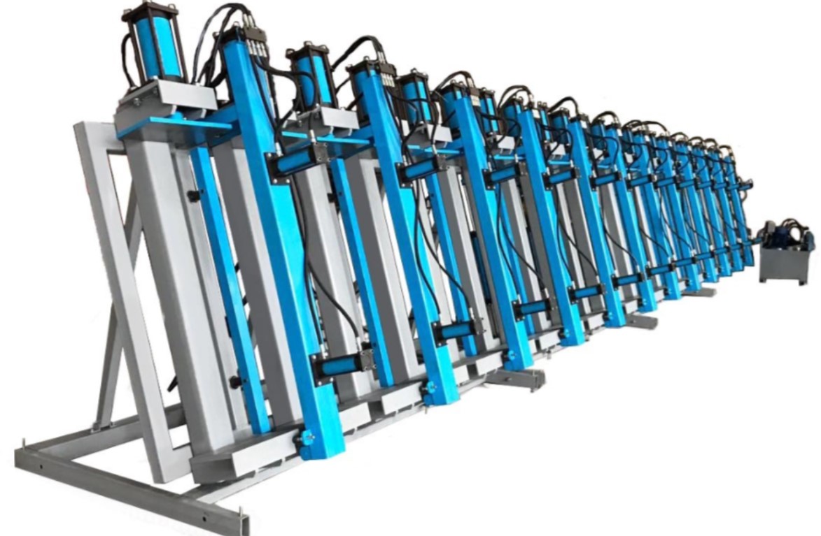 Гидравлические фронтальные прижимы гарантированно выравнивают и удерживают пакет заготовок во время прессования.