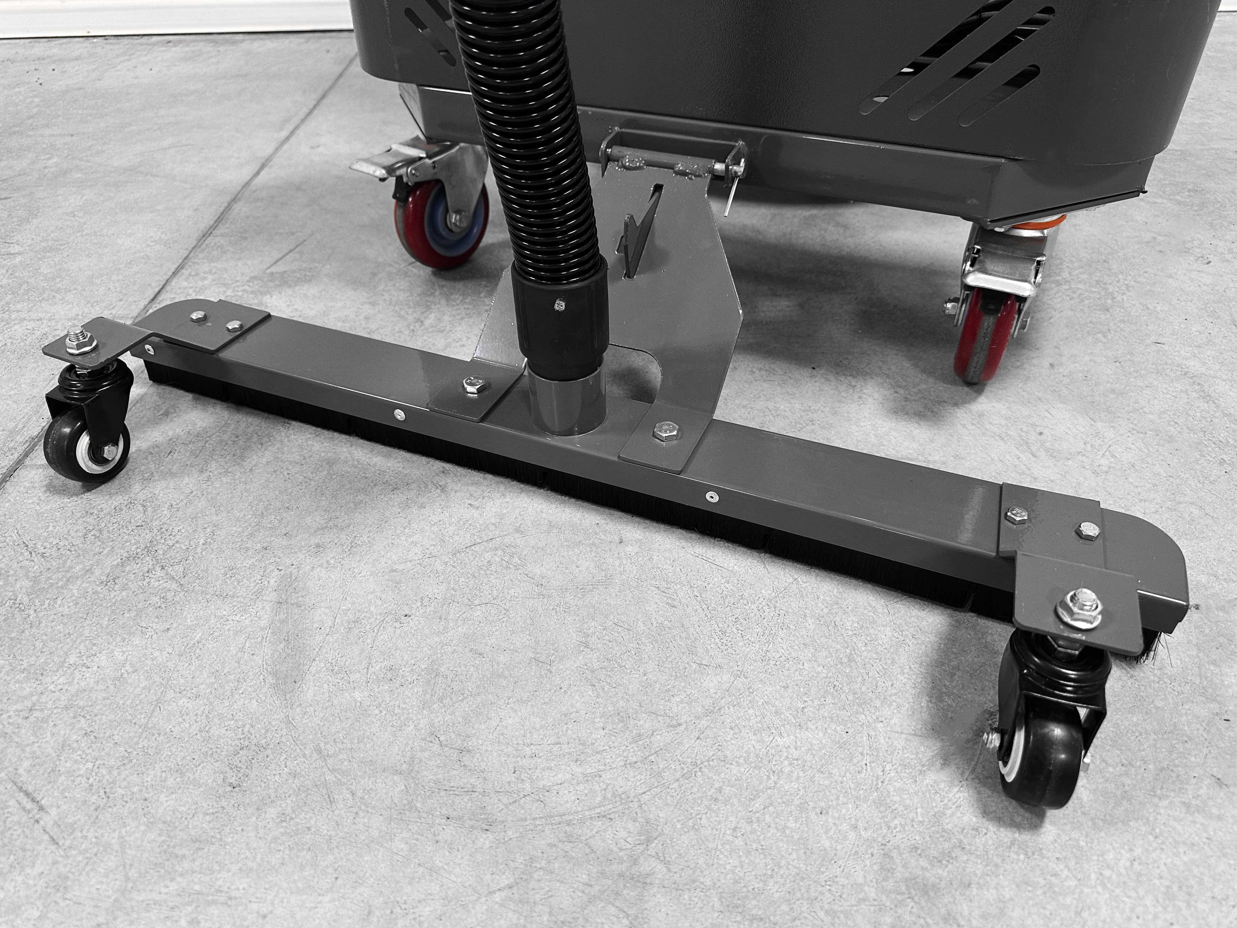 Пылесос имеет основную щетку шириной 70 см, для уборки больших площадей. Так же в комплектации шланг длиной 5 метров с насадкой от классического бытового пылесоса и дополнительными насадками для уборки в труднодоступных местах.