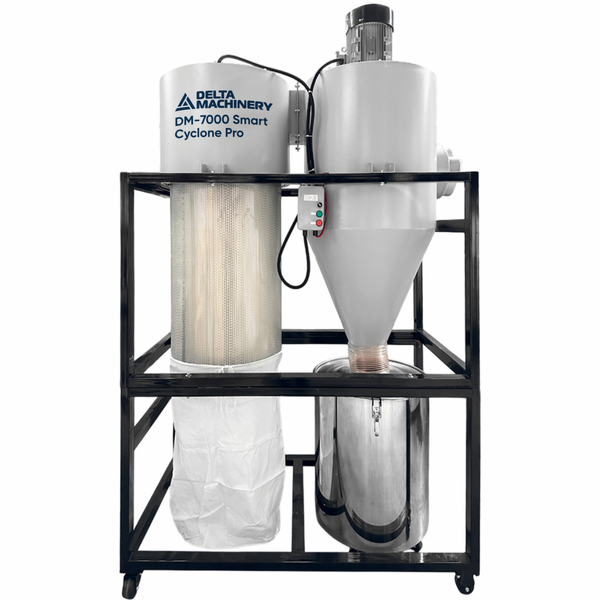 В данном отсеке происходит очистка воздуха от твёрдых загрязнений (стружка, опил и т.д.) при помощи центробежной силы происходит отделение «тяжелых» частиц от воздушного потока.