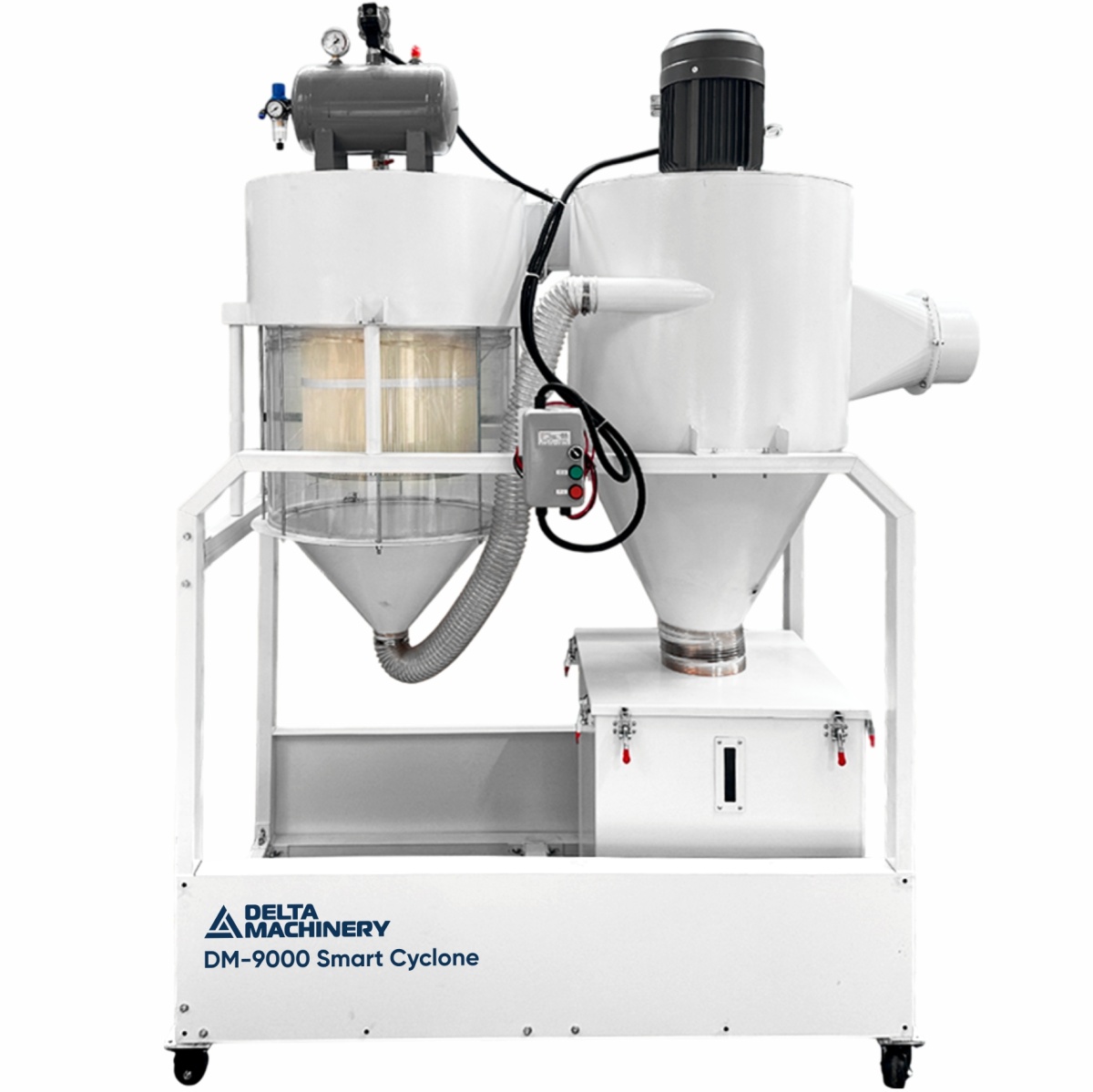 В данном отсеке происходит очистка воздуха от твёрдых загрязнений (стружка, опил и т.д.) при помощи центробежной силы происходит отделение «тяжелых» частиц от воздушного потока.