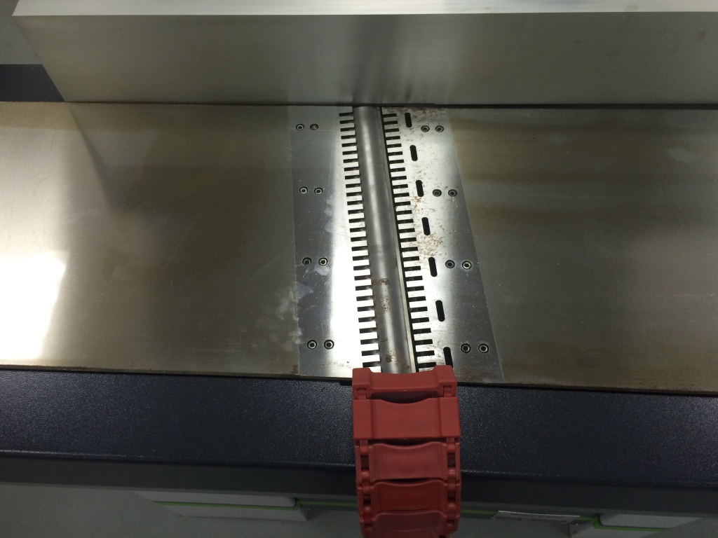 Направляющая линейка Алюминиевая направляющая линейка длиной 1200 мм и высотой 150 мм с перемещением с помощью маховика через передачу шестерня-рейка. |