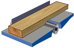 Ножевой вал расположен под углом обеспечивает: Плавный вход ножей в заготовку, исключая её подрывы в начале и в конце. За счет резания волокон под косым углом исключается образование опережающей трещины и повышается качество строганной поверхности. Исключен удар ножей о заготовку, что обеспечивает мягкое строгание и безопасность работы в сравнении с обычным прямым валом. |