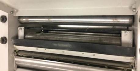 На рабочем столе расположены четыре ролика, обеспечивающие лучшее скольжение заготовки. Два ролика расположенные под верхним валом - приводные. В зависимости от типа заготовки ролики могут быть настроены на нужный вылет из стола.