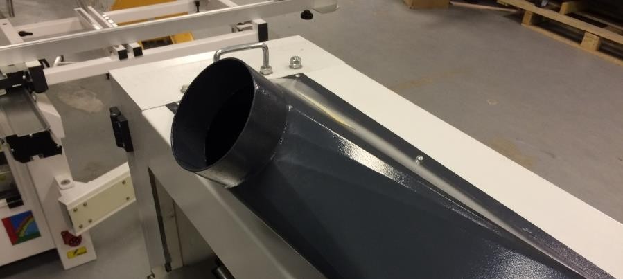 Выброс стружки осуществляется через эксгаустерные воронки. Фото сверху – аспирационный патрубок от верхнего (рейсмусового) ножевого вала. Фото снизу – аспирационный патрубок от нижнего (фуговального) ножевого вала.