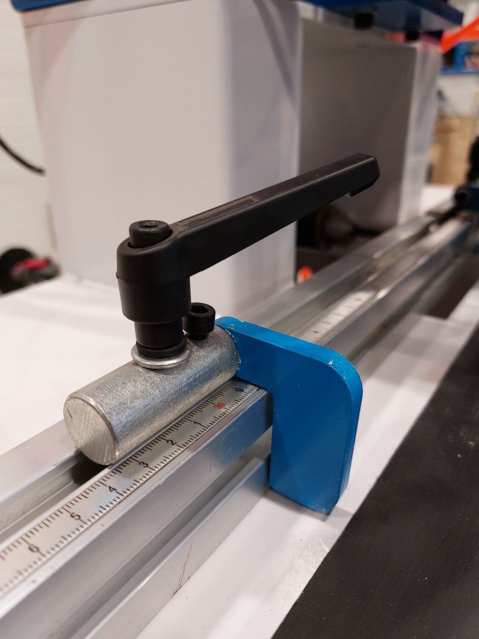 Регулировка по глубине сверления горизонтальных отверстий осуществляется путем позиционирования линейки фиксирующим болтом на боковых упорах.