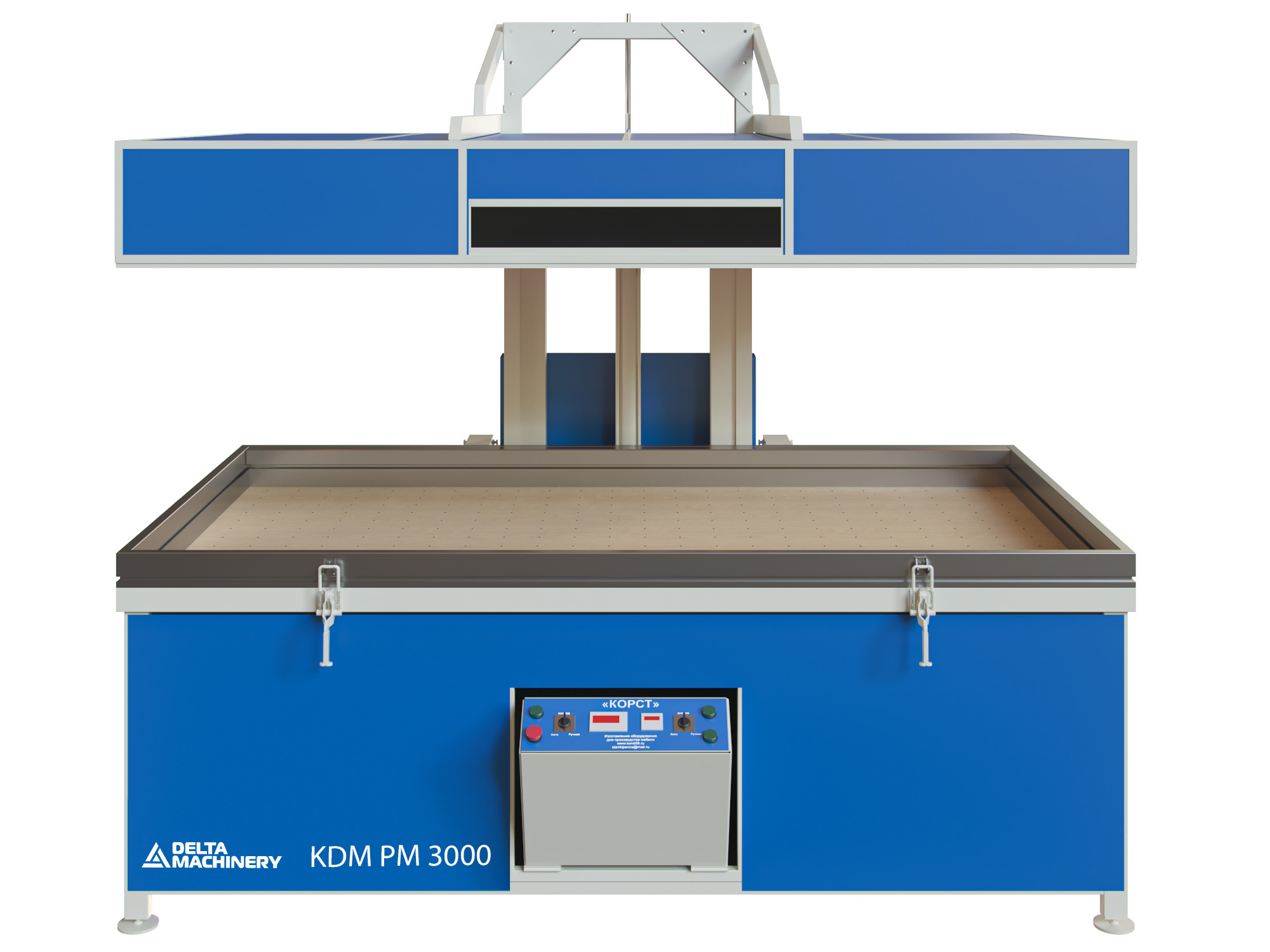Вакуумный пресс KDM PM-3000 спроектирован и изготовлен для небольших цехов, которые занимаются производством мебели с применением МДФ фасадов, и организаций, которые занимаются изготовлением дверей.