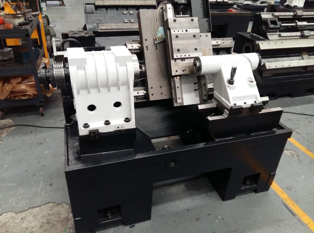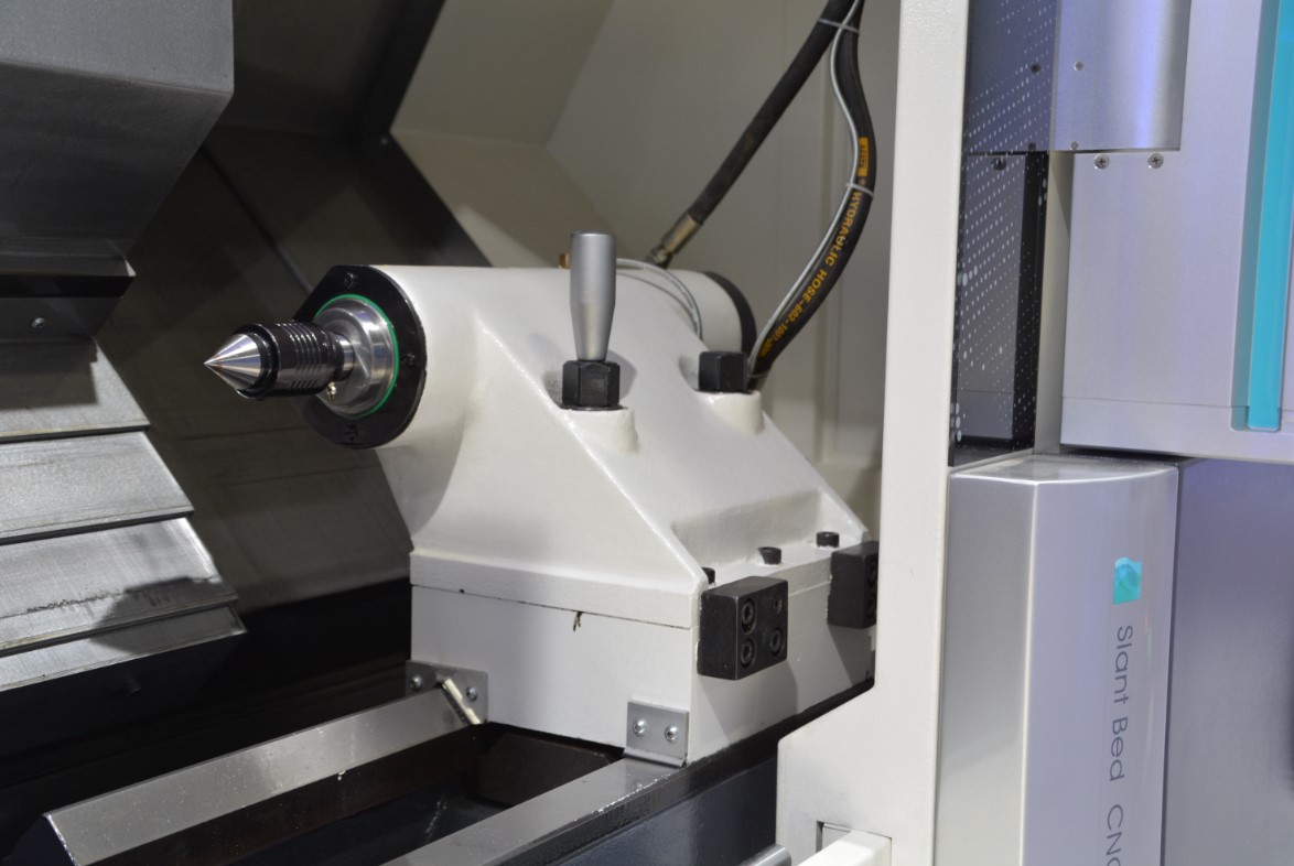 Наклонная станина отлита из чугуна. Угол наклона станины 45° и 60°. Такая конструкция станины обеспечивает лучшую устойчивость, жесткость, гашение вибраций. Так же наклонная станина занимает меньшую площадь, что позволяет легко удалять стружку и очищать станок.
