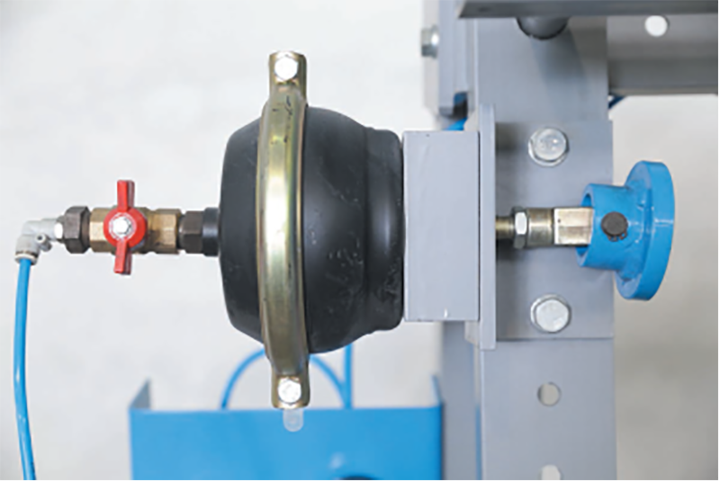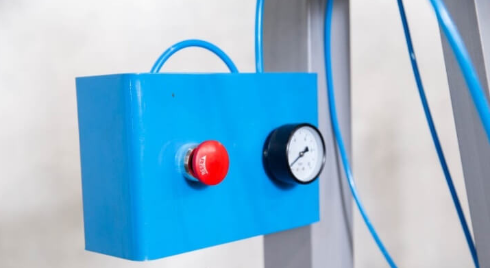 Кнопочный пневмораспределитель облегчает работу с ваймой. Манометр позволяет визуально контролировать рабочее давление в системе.